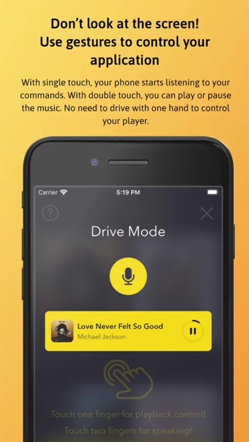 With single touch, your phone starts listening to your commands. With double touch, you can play or pause the music. No need to drive with one hand to control your player.