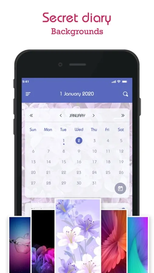 The app contains a calendar, you can select a date and write a diary or notes for that day.