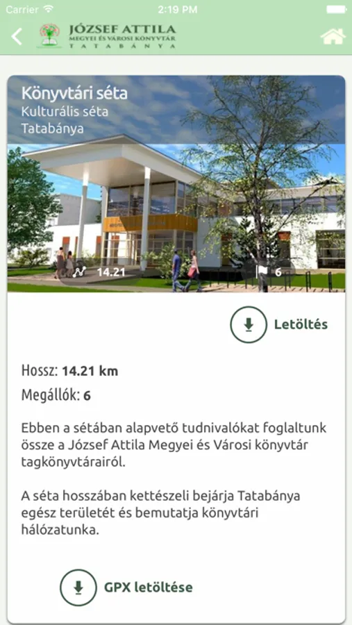 Könyvtári sétánk a tatabányai könyvtári hálózatot mutatja be. A központi könyvtártól kiindulva érinti összes fiókkönyvtárunkat egy hosszú séta során, amely egész Tatabányát bejárja.