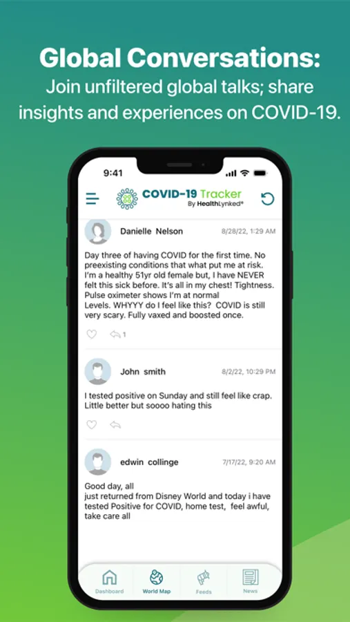 HealthLynked has developed its own Corona-virus tracker app that allows users to self-report symptoms, report positive tests for the virus, and alert contacts so that they can seek medical care to prevent spread. The app includes an interactive map of COVID cases and deaths from around the world, the latest worldwide COVID-19 related news, user forums, and live chat. in addition, you can learn about the Omicron variant and use an interactive map for the US.