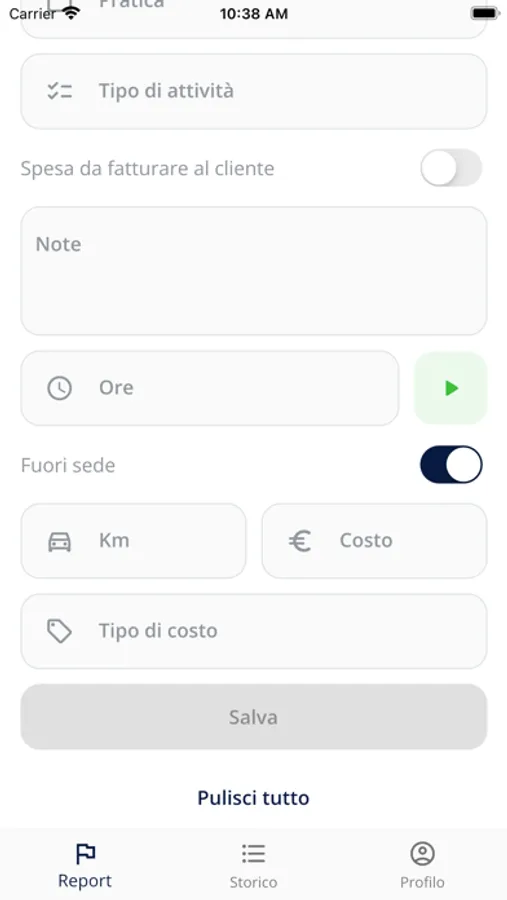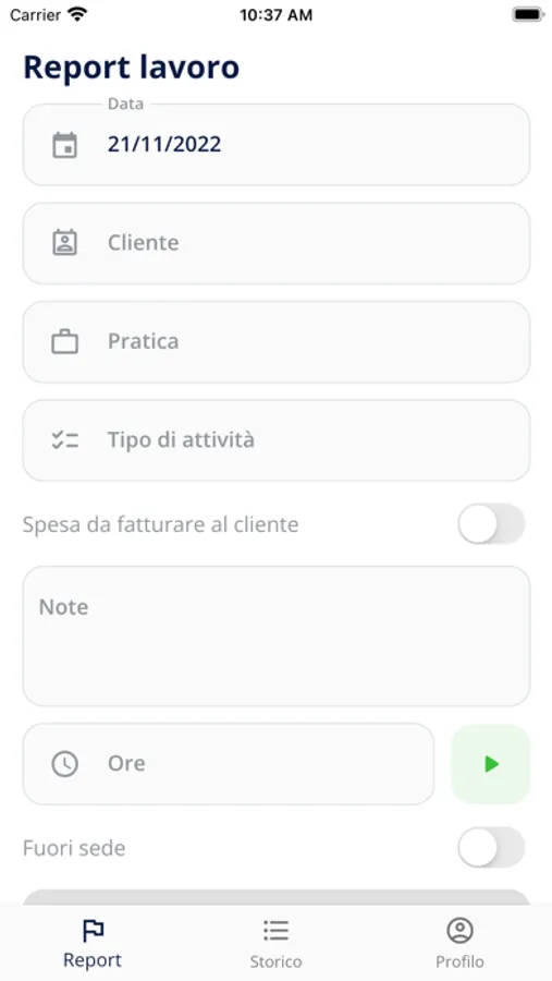App di rilevazione tempi utilizzati per commesse e pratiche