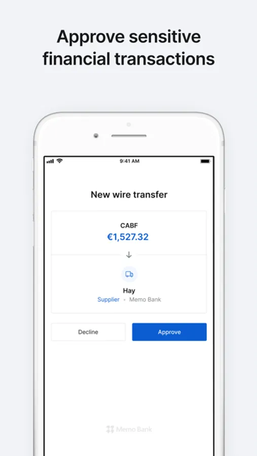 To pair your iPhone or iPad with your Memo Bank account, download the app and scan the QR code that appears on your computer screen when you connect to your account. Once the app has been installed and linked to your Memo Bank account, that’s it. There is nothing else to do on your part. You will automatically receive a notification each time you need to authorize any of the following: