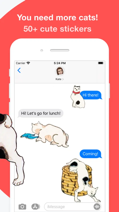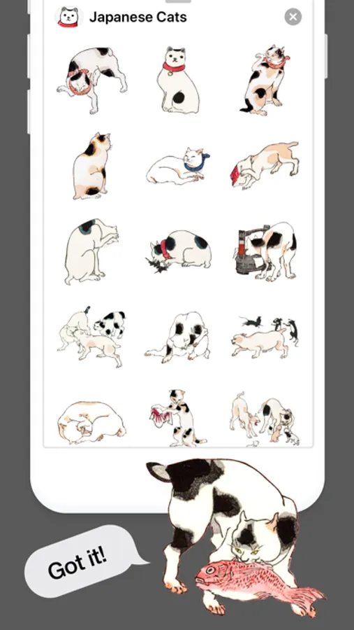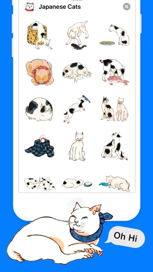 Whether you like them or not, cats rule the internet. These stickers are perfect for any and every occasion! More than 50 funny and very cute cats from Japan. Suppose you are bored or you want to cheer your friends – send them our stickers.