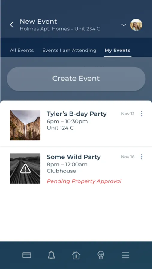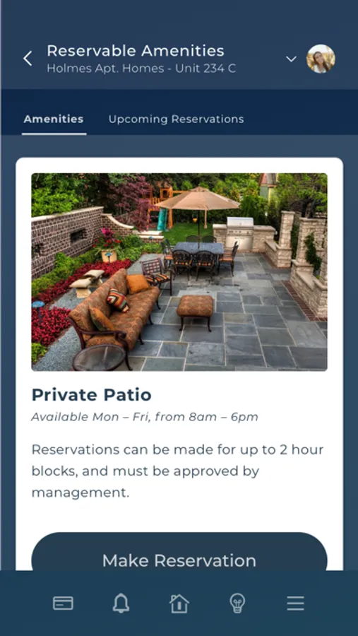 • Contact Property - Contact your property directly from the app. The app automatically routes your call to the appropriate after-hours number when the office closes.