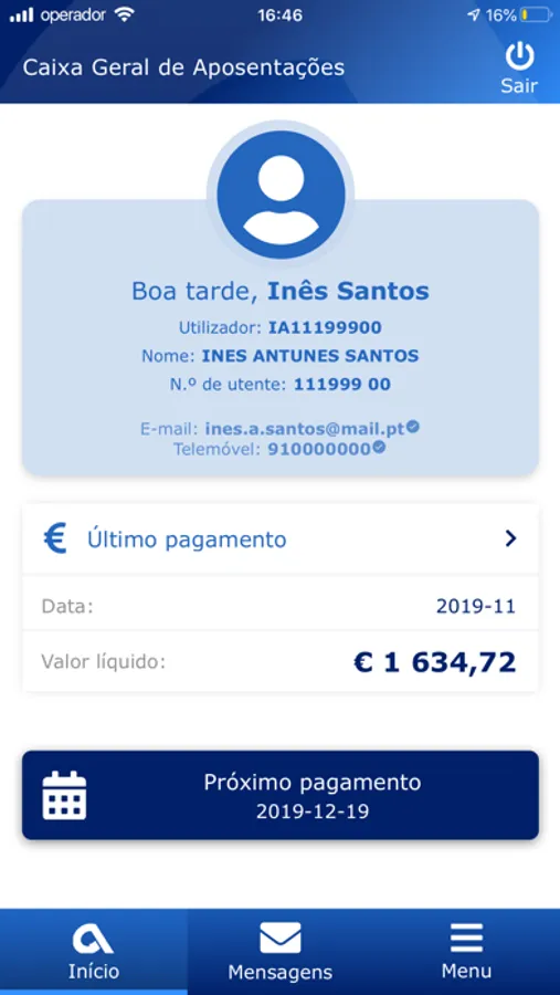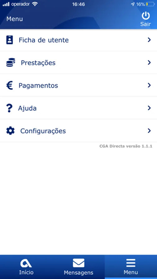 A App CGA Directa disponibiliza um conjunto de funcionalidades de consulta, como a ficha de utilizador, ficha de utente, prestações, pagamentos e mensagens.