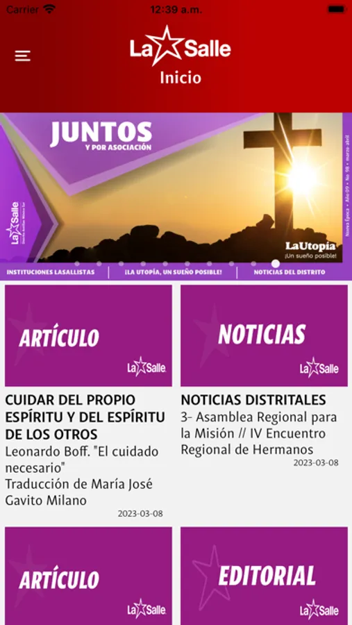 La Asociación de la Misión Educativa Lasallista ofrece la consulta de la revista "Juntos y por asociación" en línea mediante esta app, podrás compartir artículos, guardarlos como favoritos y descargarlos en versión PDF para leerlos aún cuando no tengas conexión a internet.