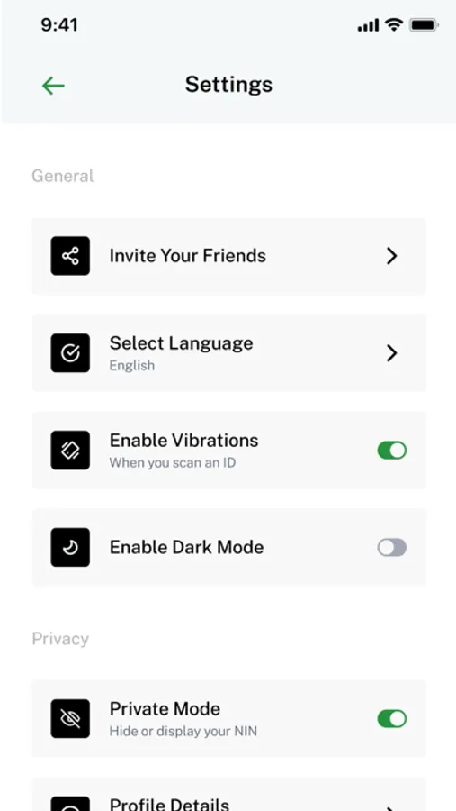 This MobileID Application is issued by the NIMC on behalf of the Federal Republic of Nigeria and serves as a valid means of Identification anywhere a Nigerian (or legal resident) is required to present an ID Token.