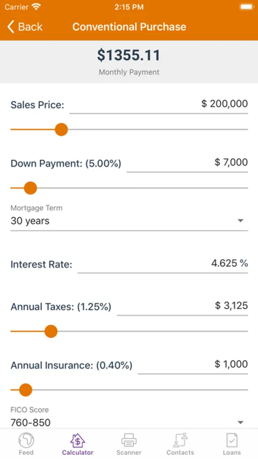 Calculate scenarios based on down payment amount, interest rate, and other variables