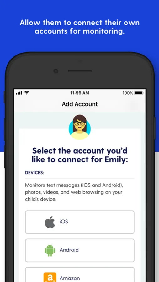 The Bark Kids app allows kids to connect their own accounts to Bark’s monitoring service (not available with Bark Jr). By allowing them to connect directly to our monitoring service, they get more privacy without having to share their usernames or passwords.