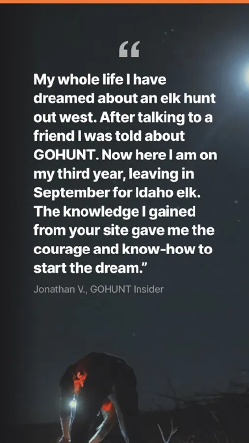 Trusted by expert hunters like Randy Newberg, Remi Warren, and Ryan Lampers, GOHUNT is the leading platform to empower hunters to find and plan hunts across the country. Whether you’re looking to hunt Elk in Colorado, Mule Deer in Montana, no matter the state or species GOHUNT helps you get there.