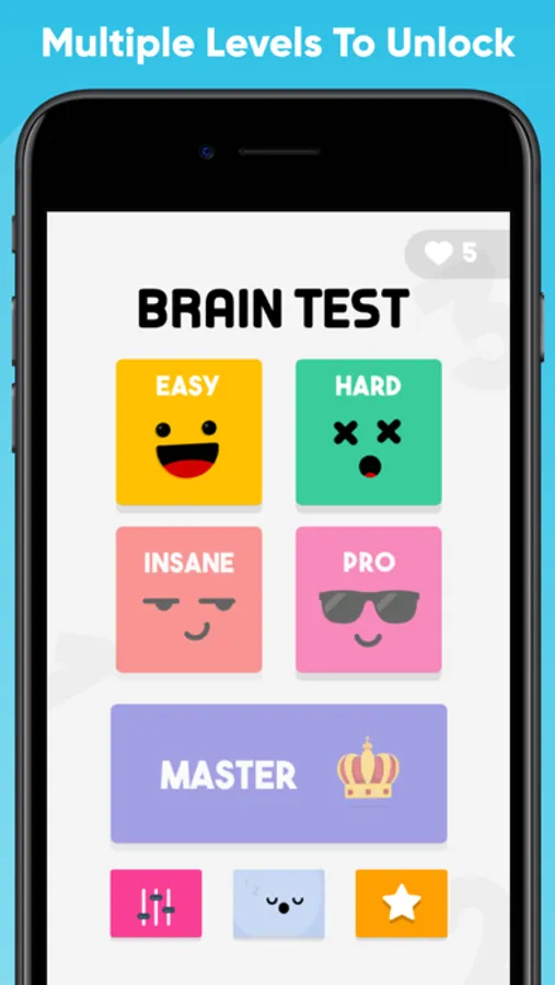 - 5 different levels. Easy, hard, insane, pro and master
