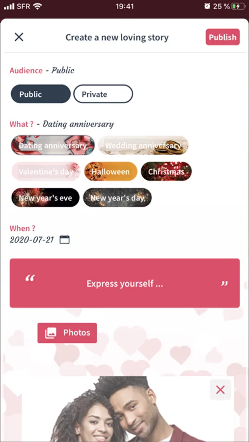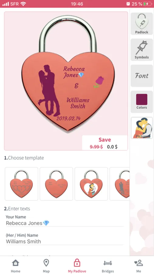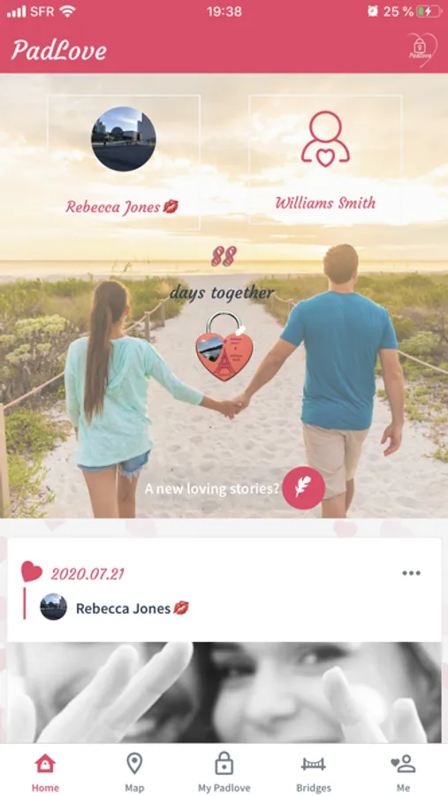 Create your love padlock, associate your lover and share your love stories with those who follow your couple.
