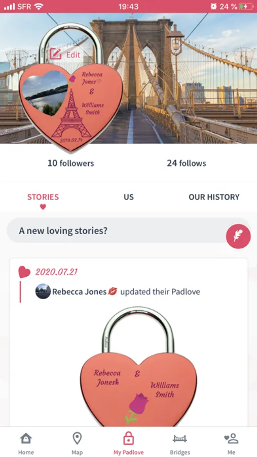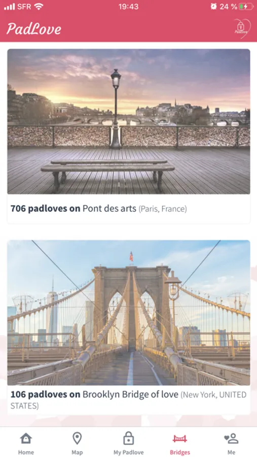 Padlove is an app created to offer to lovers a possibility to hang a virtual padlock on bridges around the world, and share the stories of their love with others.