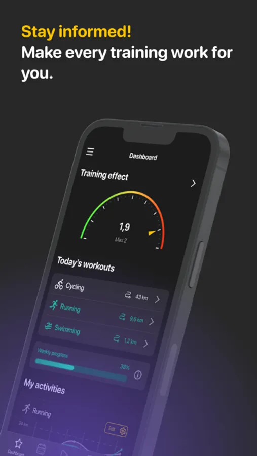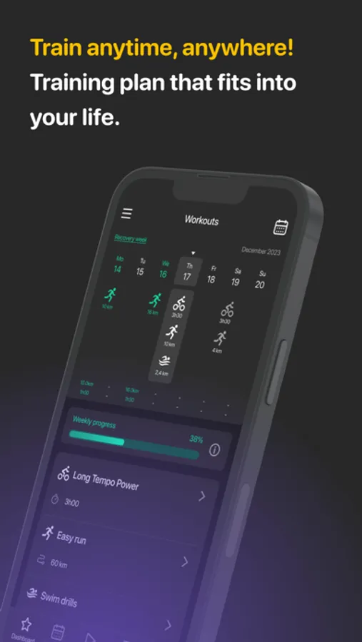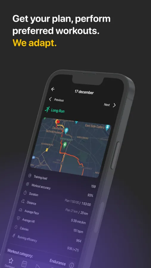 - Adaptive training plan for your goal and abilities;
