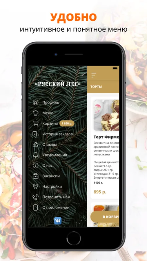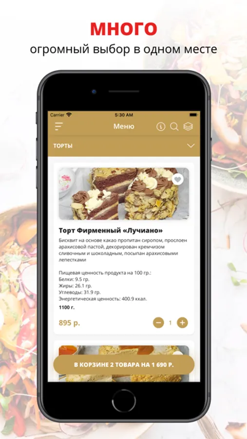 В нашем мобильном приложении вы можете заказать продукцию кондитерской с доставкой на дом! Установите приложение, выберите любимые блюда и продукты из каталога и оформите заказ в пару кликов!