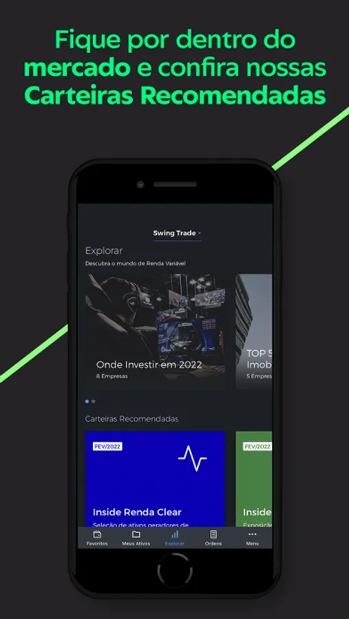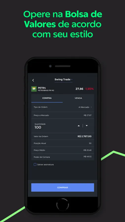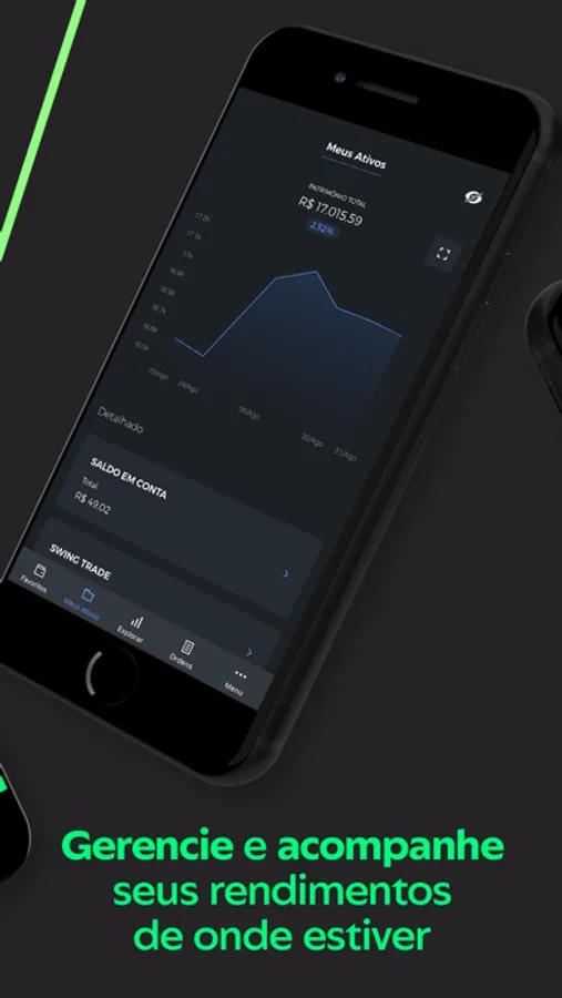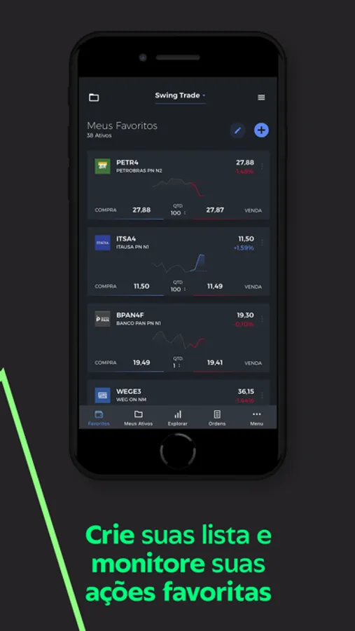 Em nosso app, você pode acompanhar o mercado de ações em tempo real, controlar seu lucro e prejuízo em cada negociação na bolsa de valores, além de ter ordens integradas com o Home Broker.