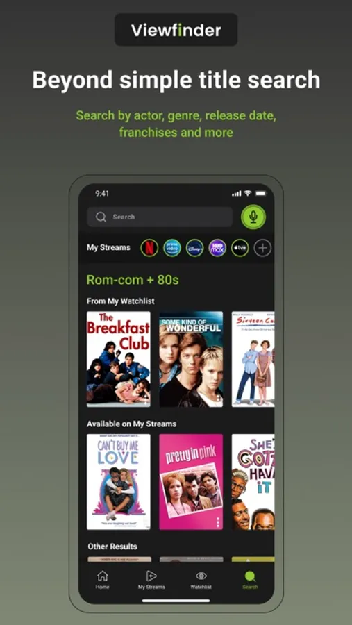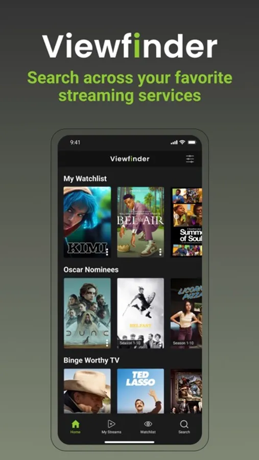 Viewfinder uses natural language to search Netflix, Prime Video, Hulu, HBO Max, Disney+, Apple TV+ and 50+ streaming services*. Not sure where that new movie or bing-worthy show is streaming, just ask Viewfinder.