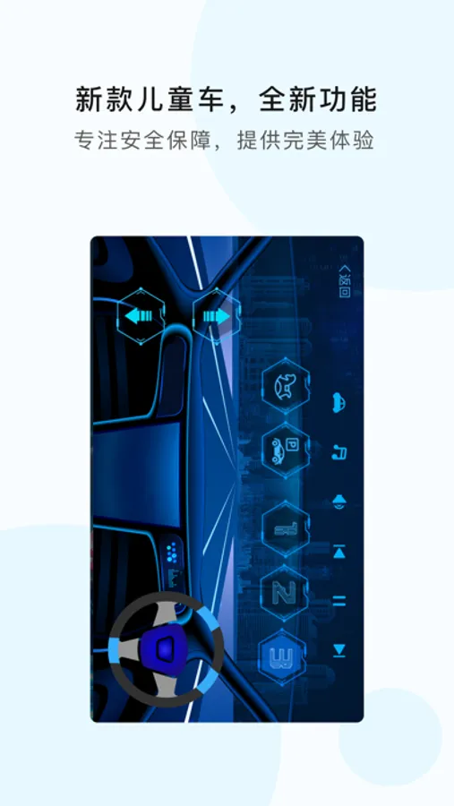 全新的交互体验,蓝牙实时控制,长按持续前进和后退。松开按钮或者退出软件控制界面,小车立即停止,保障儿童安全。向左向右模拟方向盘,给人更好的驾驶体验。1档、2档、3档的速度设置,满足不同年龄的儿童对乘坐体验的需求。
