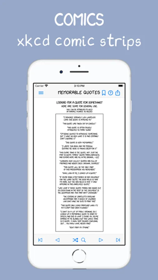 - xkcd's own fonts are used throughout the app, or you can switch to iOS's system fonts if you want.