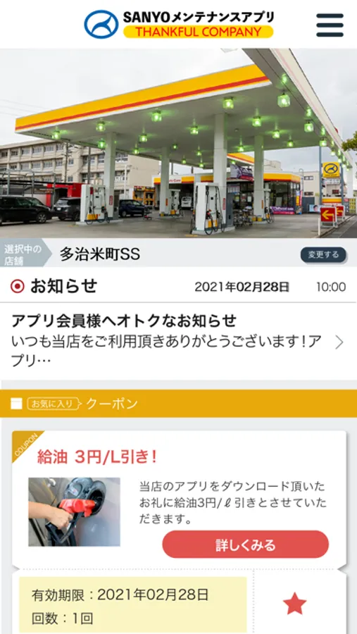 当社のアプリ「山陽メンテナンスアプリ」ではアプリで簡単に洗車・コーティングなどのご予約や愛車のメンテナンス管理が可能の他、ご登録いただいた店舗で利用いただけるお得なクーポンや各種メニューの割引情報を配信しております。