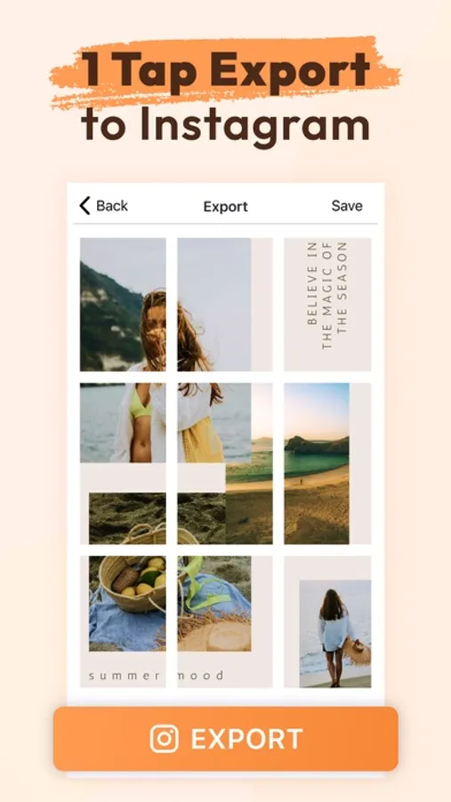 Do you want to attract new subscribers? Let your imagination run wild! Interesting stickers and text fonts of Grid post layout will help you make photo grids even richer and more emotional. Tell your followers your story in a special way, and your friends will never leave your post unnoticed!