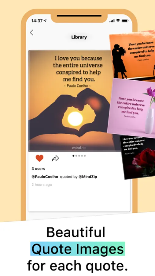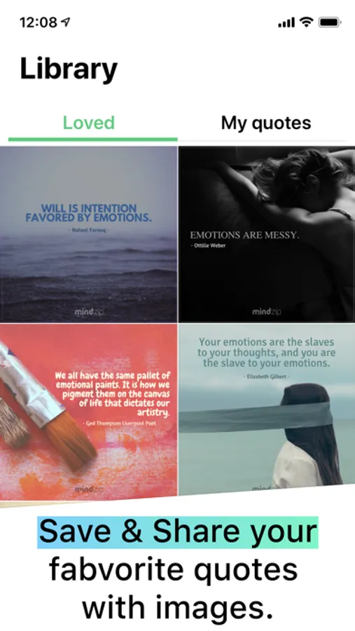 All quotes and their quote images can be bookmarked and repeated in the MindZip app.