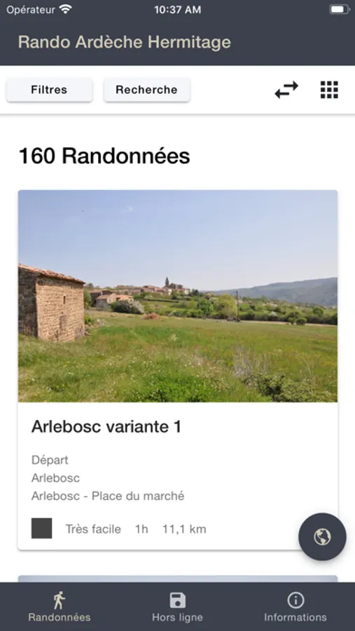 Choisissez le niveau de difficulté, le temps de parcours, la thématique, et laissez vous guider par l'application sur le parcours de votre choix.Téléchargez la fiche rando, et consultez là partout sur le terrain, y compris lorsque la couverture fait défaut.