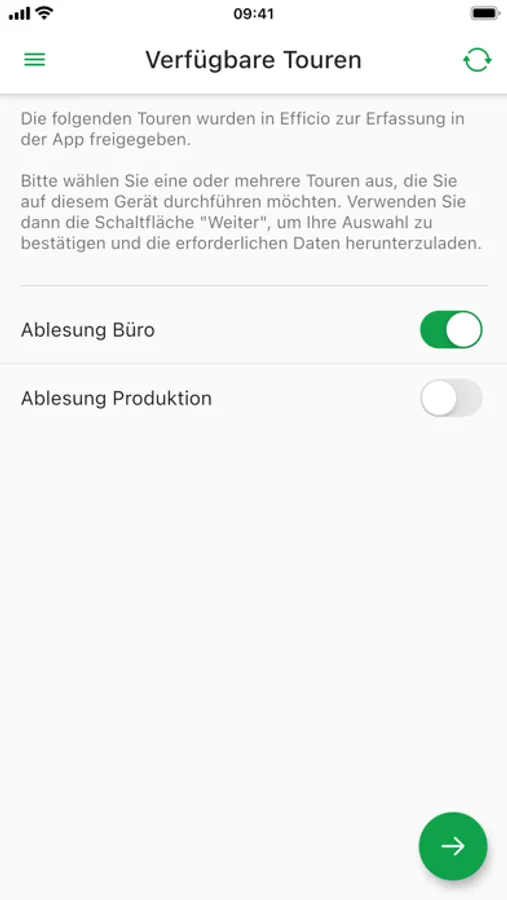 Es können beliebige Touren aus Efficio auf Ihr Gerät übertragen und erfasst werden, ohne dass während der Ablesung eine Verbindung zum Internet oder Firmennetzwerk benötigt wird. Sollte einmal keine Verbindung bestehen, werden alle erfassten Werte automatisch zu einem späteren Zeitpunkt mit Efficio synchronisiert, sobald erneut eine Verbindung besteht.