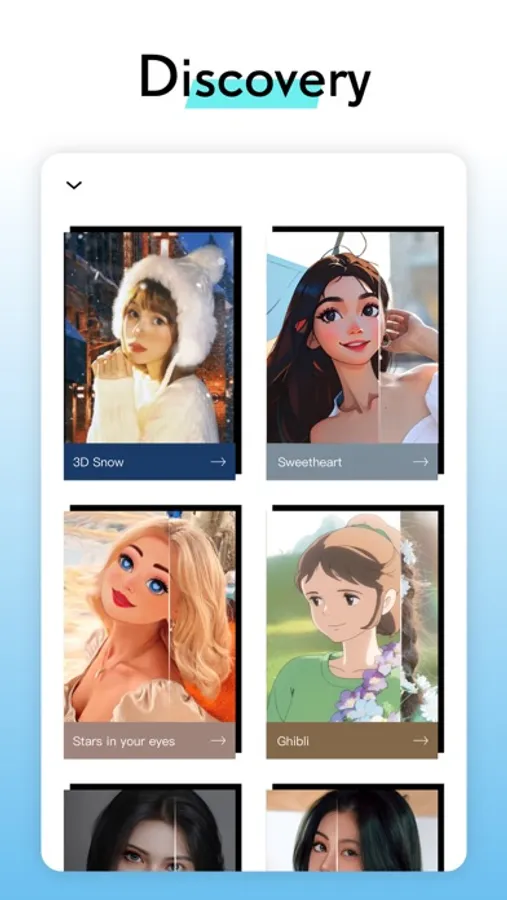 Turn your photo into various of awesome cartoon effects. Whether your original photo looks good or not, it will become totally different with cartoon effects.