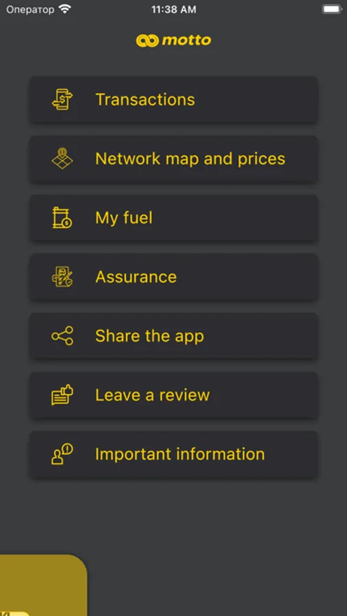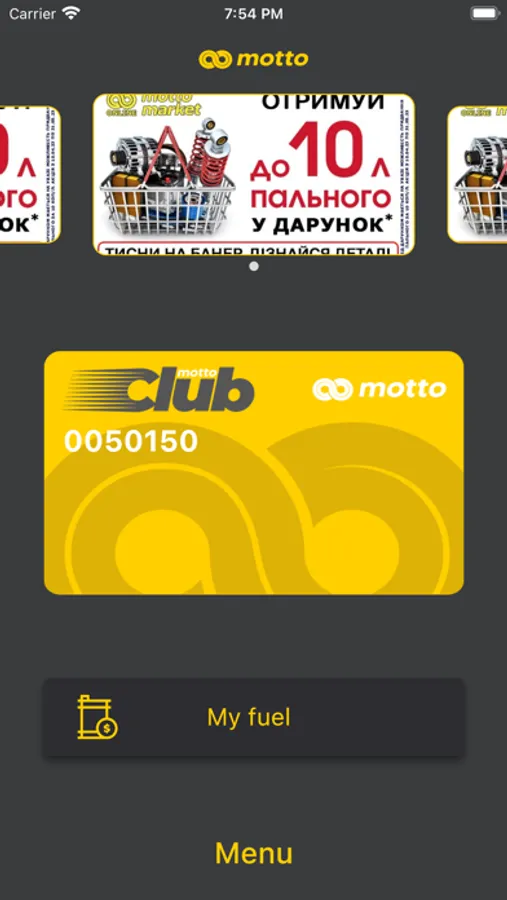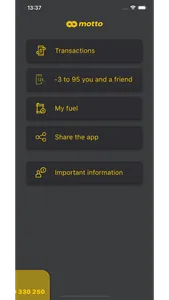 Get more advantages with absolutely new mobile application MOTTO CLUB for IOS. Download the App to your smartphone and leave the plastic card at home. Now your discount on MOTTO fuel products is always in your pocket. Use QR code in Application instead of plastic card. Just download the App, full the fields with your phone number and card number once and get immediate access to