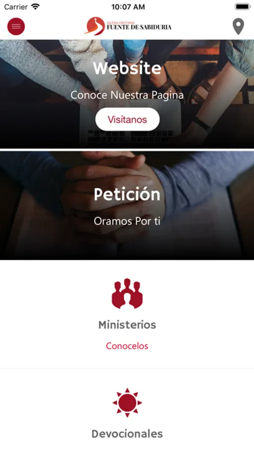 El App movil Fuente de Sabiduria tiene como fin ser un canal de bendicion para todas las personas que asistan a nuestra iglesia y deseen ser parte de nuestra comunidad donde el amor de Dios esta sobre todas las cosas. Aquí encontraran alimento para el alma, calendario de nuestros eventos, formulario de peticiones de oracion, conectar con mas personas de la iglesia y mucho mas.