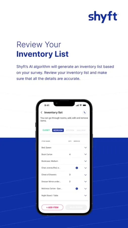• Shyft prides itself on its 95% accurate inventory lists. This is important because it enables us to source accurate moving quotes from multiple moving companies within the Shyft network.