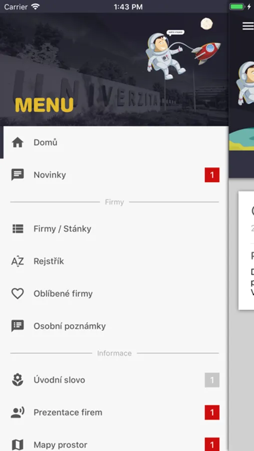 Seznam všech firem, filtrování dle hledaných oborů, program prezentace firem, mapy všech prostor, partneři a mnoho dalšího!