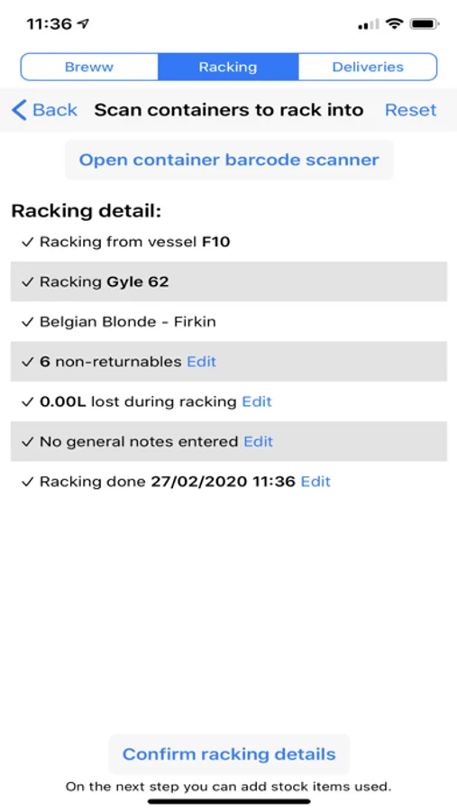 There's also a more streamlined racking process with built-in barcode scanner to make racking containers such as casks and kegs easier and faster than ever before.