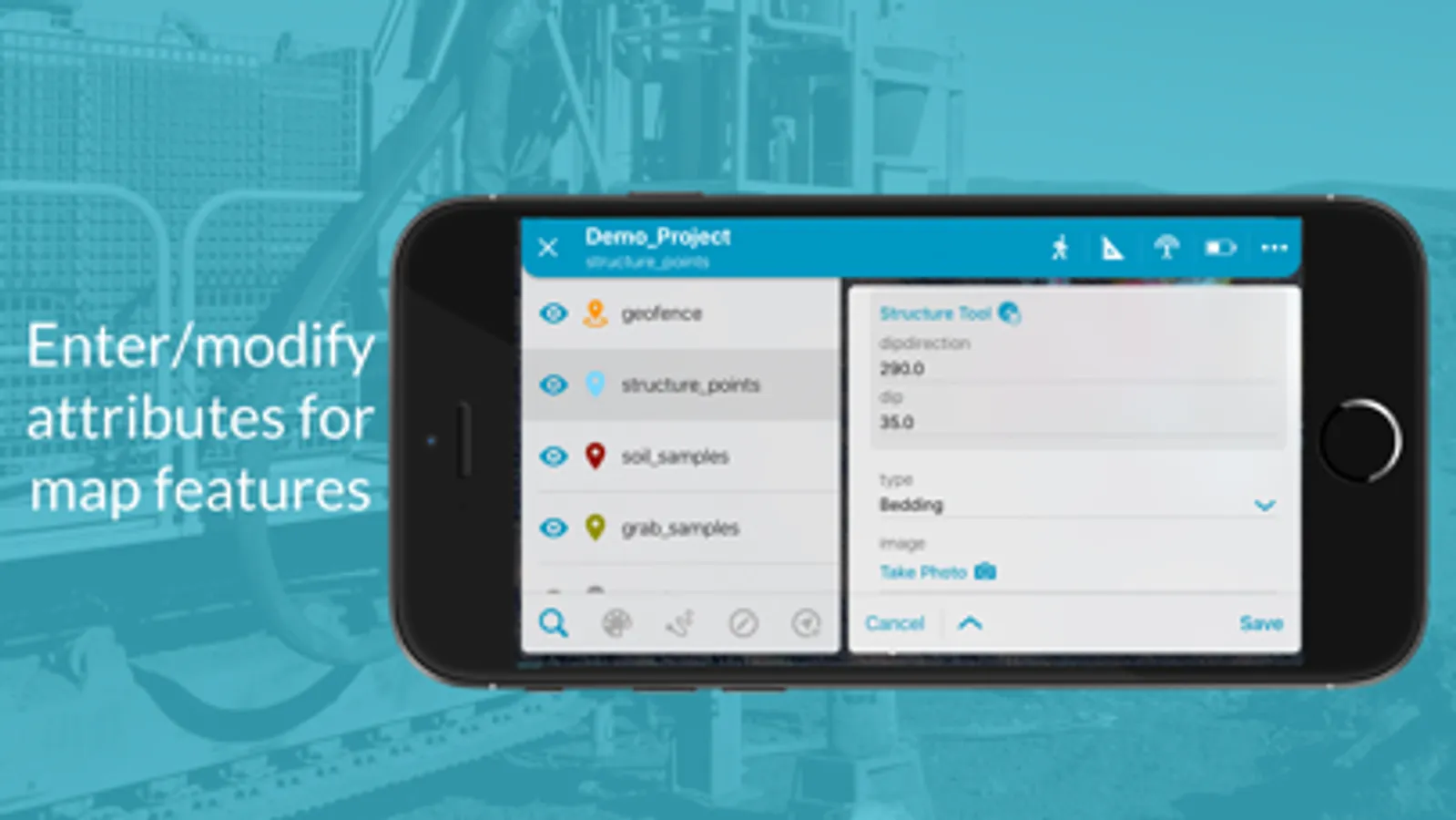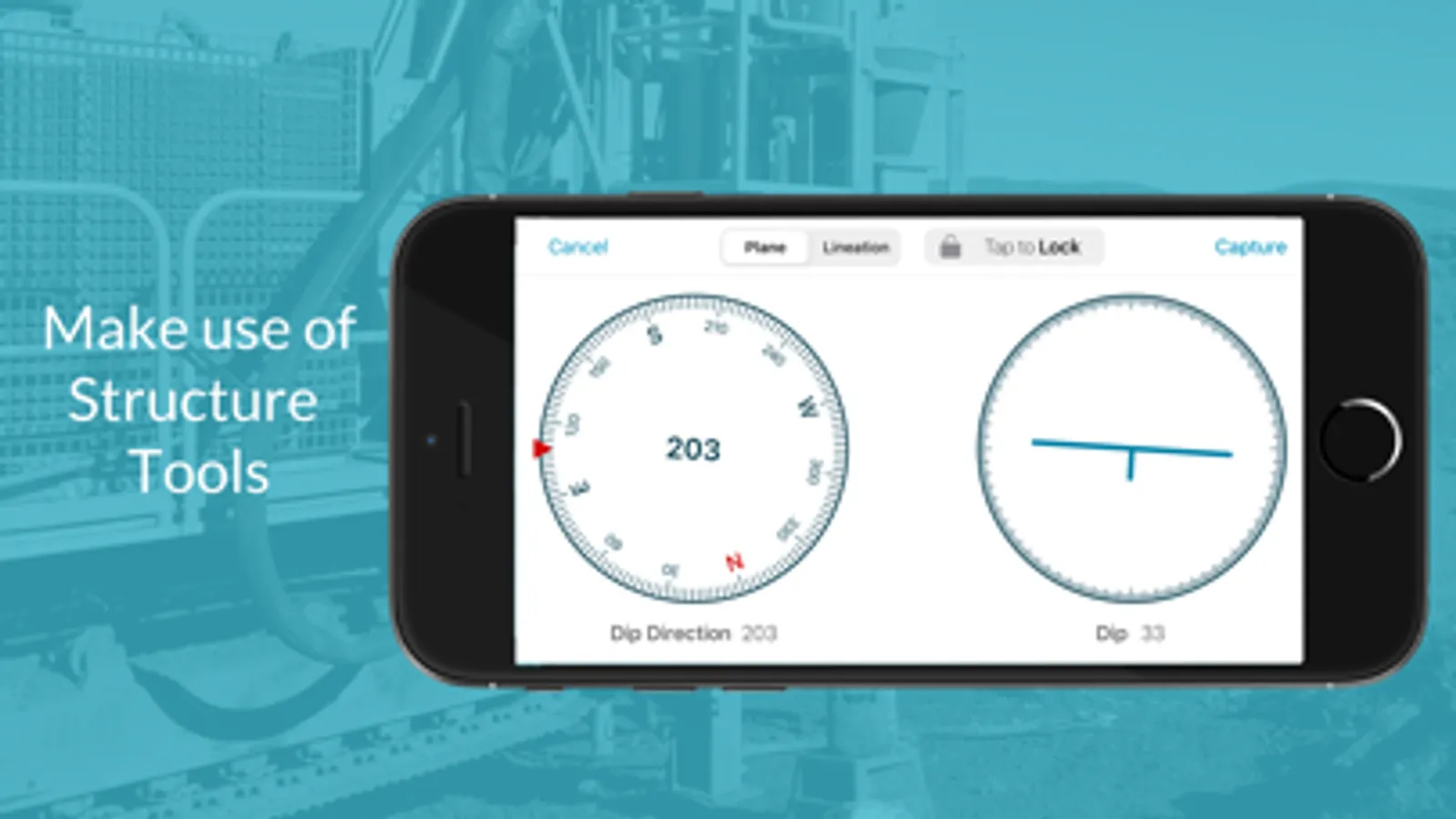 - Measure structural planes and lineations with a clinometer and compass using the inbuilt device sensors