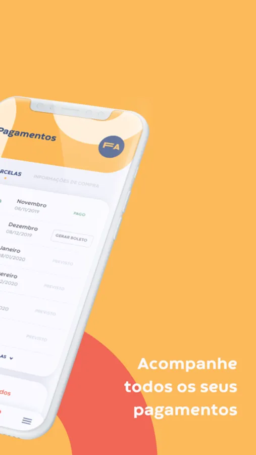 Aplicativo com recursos para formandos gerirem sua conta junto a empresa Formô.