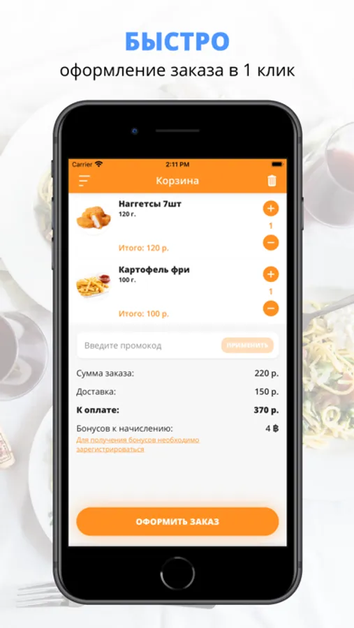 Заказывая через приложение, вы будете накапливать бонусные баллы, которыми сможете оплатить часть покупки.