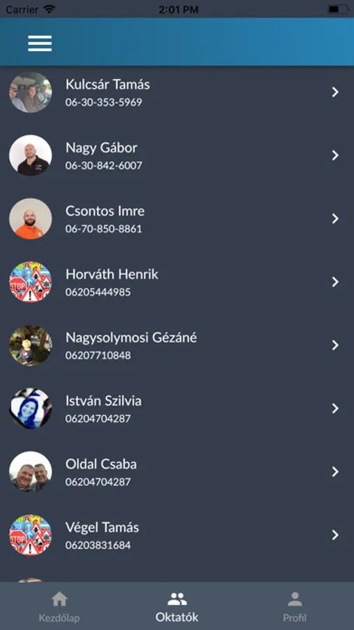 -applikáció profil oldal