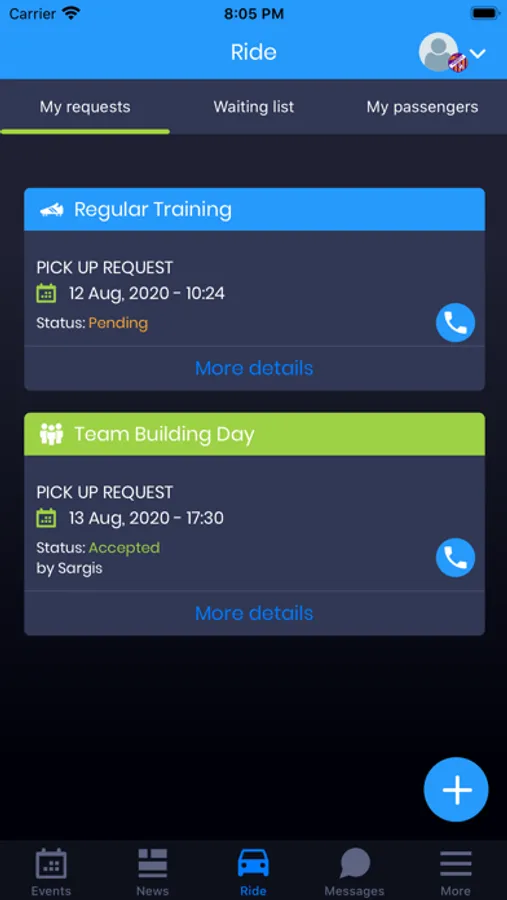 Using the application chat parents can talk with couches and arrange transportation of their child to an ongoing sports event.