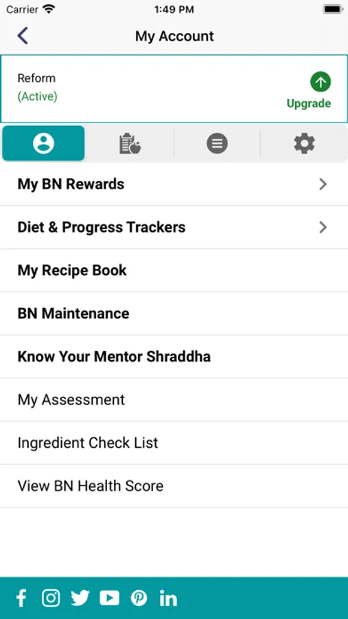 Here, the clients will find their personal account called “My Account” which has the nutritional assessment, all the necessary trackers, diet charts, the BN E - KIT & many other features helping you in your program.