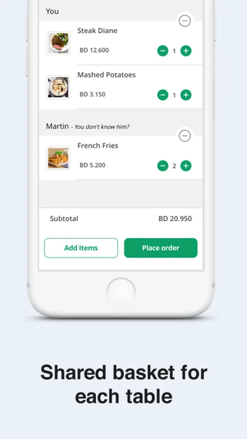 - Identify your tables by QR code and let your customers order through an online shared basket so that they can see each other’s placed orders.