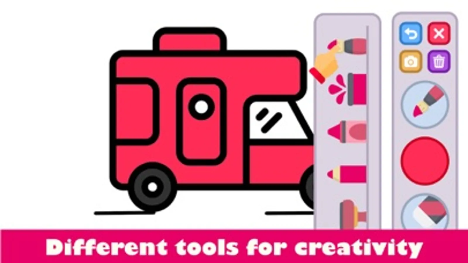 The app contains pictures on different topics that will entertain your child with fascinating sounds and funny characters. Moreover, it contains many coloring tools for kids to entertain with fascinating sounds and funny animations.
