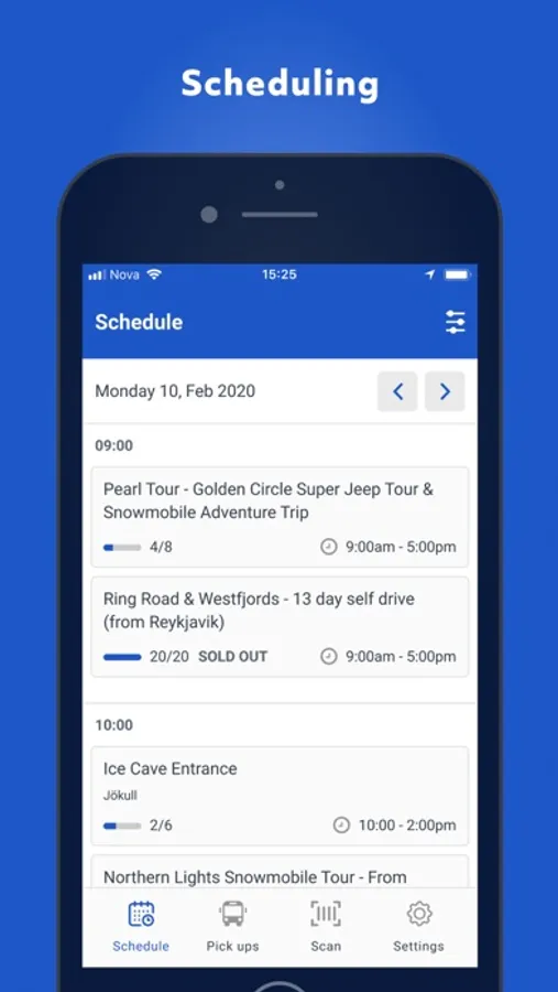 Prepare your day and keep track of your business calendar. Add or remove guides from the schedule, and handle your bookings quickly and easily.