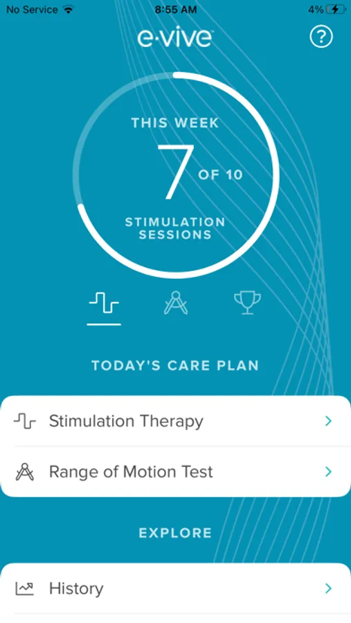 Regain your strength with the CyMedica e-vive muscle stimulation system. The e-vive app helps you take charge of your knee rehabilitation and arthritis management from home, giving you complete control of your stimulation therapy and the ability to monitor your improvement in real-time. The e-vive app utilizes Bluetooth® technology to connect to the e-vive device, allowing you to manage and personalize muscle stimulation (NMES) sessions and track your daily activities.