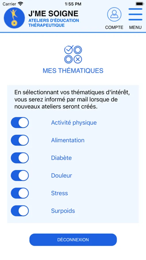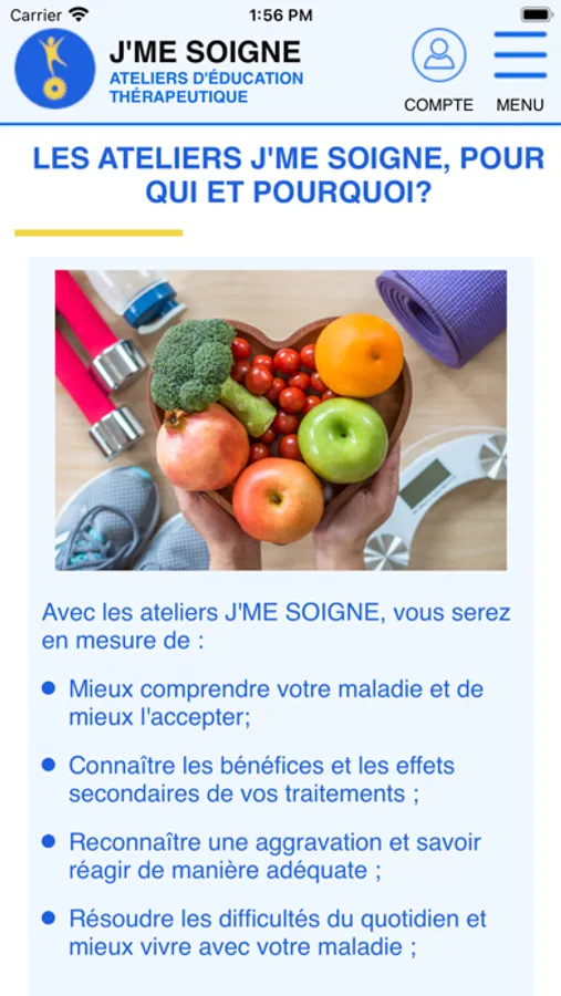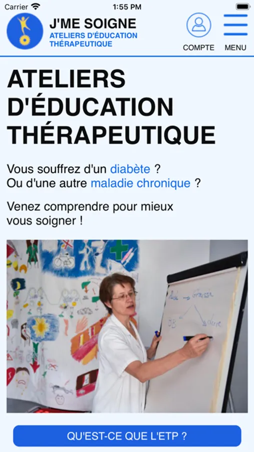 Cette application permet aux patients de connaitre les propositions d'éducation thérapeutique ou d'explications faites par les soignants qui désirent utiliser l'application que l'association T.E.A.M. leur propose.