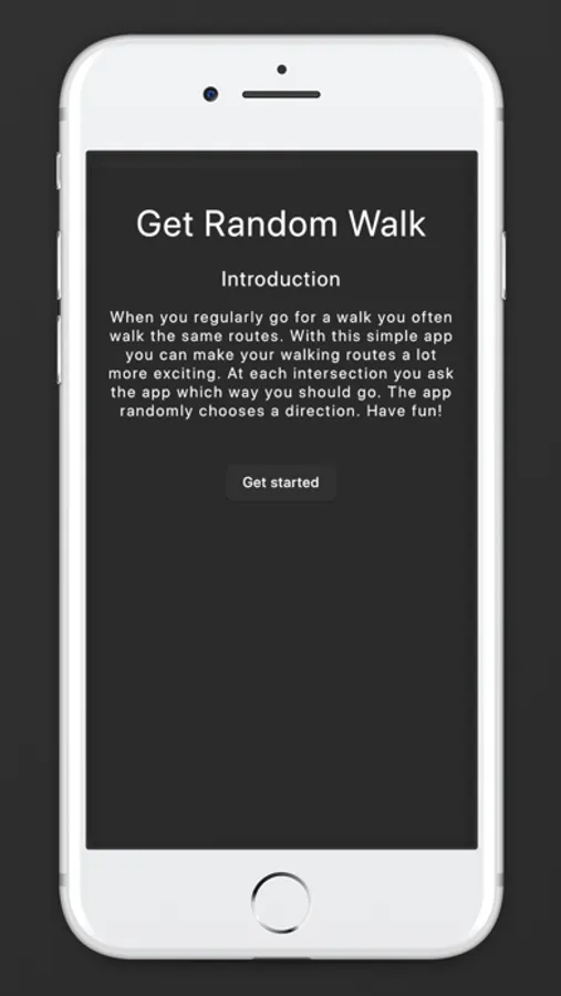When you regularly go for a walk you often walk the same routes. With this simple app you can make your walking routes a lot more exciting. At each intersection you ask the app which way you should go. The app randomly chooses a direction. Have fun!