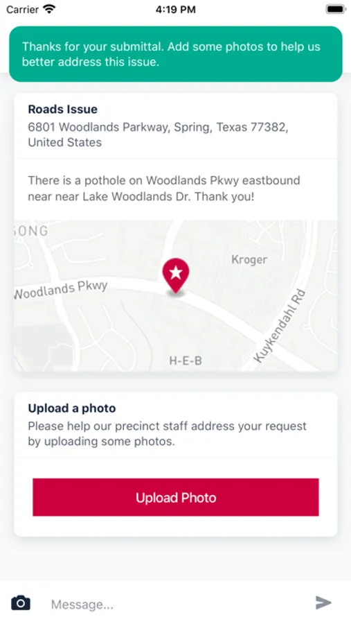 P3 Works is a mobile application provided by Montgomery County Precinct 3 Commissioner James Noack. P3 Works provides residents in Montgomery County Precinct 3 the opportunity to report issues 24 hours a day to the Precinct directly from their iPhone or iPad. Stay connected through real-time updates provided from Precinct 3 staff through the app and follow your request from the initial submission to completion. We can also send push notifications during emergencies such as high water locations and more. Through this app you can report concerns such as potholes, traffic signal malfunction, and a host of other issues. Submit a work order to Precinct 3 today or even contact us with a question through the app in just seconds!