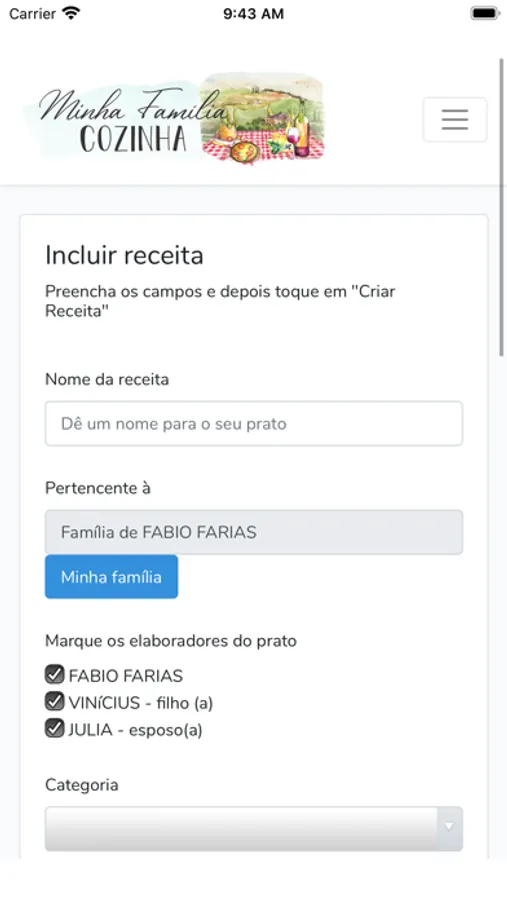 Todos os usuários que se cadastrarem poderão enviar suas receitas, que passarão pela análise do administrador do aplicativo e assim que aprovadas serão publicadas no aplicativo.
