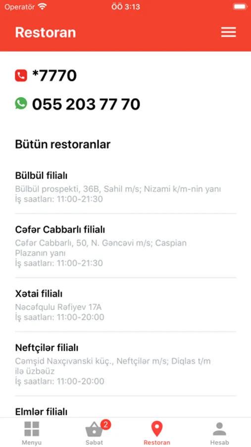 “Əjdaha Dönər” restoranları Bakı şəhərində insan axını çox olan yerlərdə, xüsusilə şəhərin mərkəz hissələrində yerləşir. Restoranlarımız həftənin yeddi günü saat 11:00-23:00-da fəaliyyət göstərir. Hazırda “Əjdaha Dönər” filialları 45 dəqiqə ərzində 3 km radiusa çatdırılmanı həyata keçirirlər.