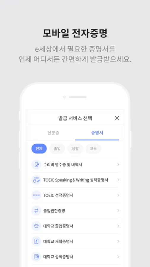 - 발급 가능 증명서 : TOEIC/TOEIC Speaking&Writing 성적증명서, 수리비 영수증 및 내역서, 대학 제증명 (재학증명서/성적증명서/졸업증명서/졸업예정증명서), ProDS 자격증, 출입권한증명